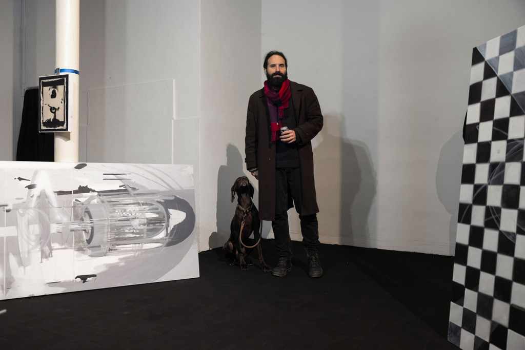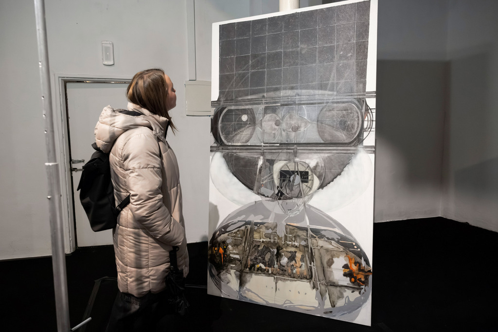 V središču razstave so velikoformatne slike, ki izhajajo iz evklidskega dojemanja prostora: tlorisa, narisa in stranskega risa. Vsaka slika izhaja iz istega objekta: nečesa, kar po obliki spominja na elektromotor, vendar ga prikaže z drugega zornega kota. Motor se razdeli na tri plasti: na zunanji pogled, na njegovo notranjo sestavo z dinamiko elektromagnetov in prevodnih materialov ter na hipotetično zunanjo aplikacijo, kjer se pojavi motiv odmičnih vzvodov, običajno prisotnih v motorjih z notranjim izgorevanjem. Poleg slik so v postavitev vključeni manjši fotogrami in projekcije, na katerih se ponavljajo motivi motorjev, ujeti v predvidene premike. Gibanje je tu zaustavljeno: vidimo konzervirane podobe procesov, ki so se že zgodili, a še vedno ohranjajo napetost potencialnega premika.